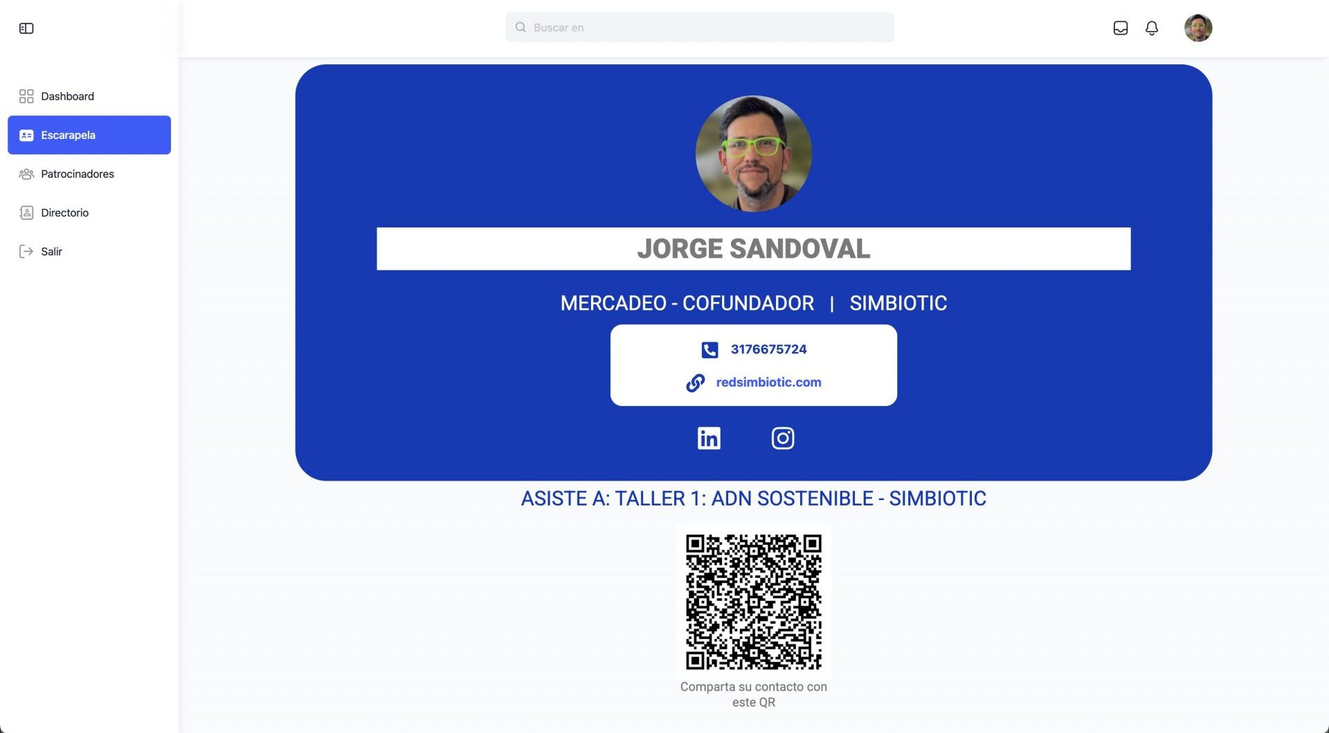 Para este evento, Simbiotic diseñó y desarrolló una plataforma digital personalizada con enfoque sostenible y colaborativo, alineada a los valores de la economía circular y el networking inteligente. Los participantes, al registrarse, recibieron: